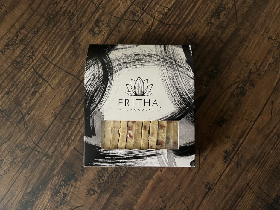 ミルク感ひかえめのタイプで、最後のほうにカカオバターのフルーティなフレーバーを感じる。
